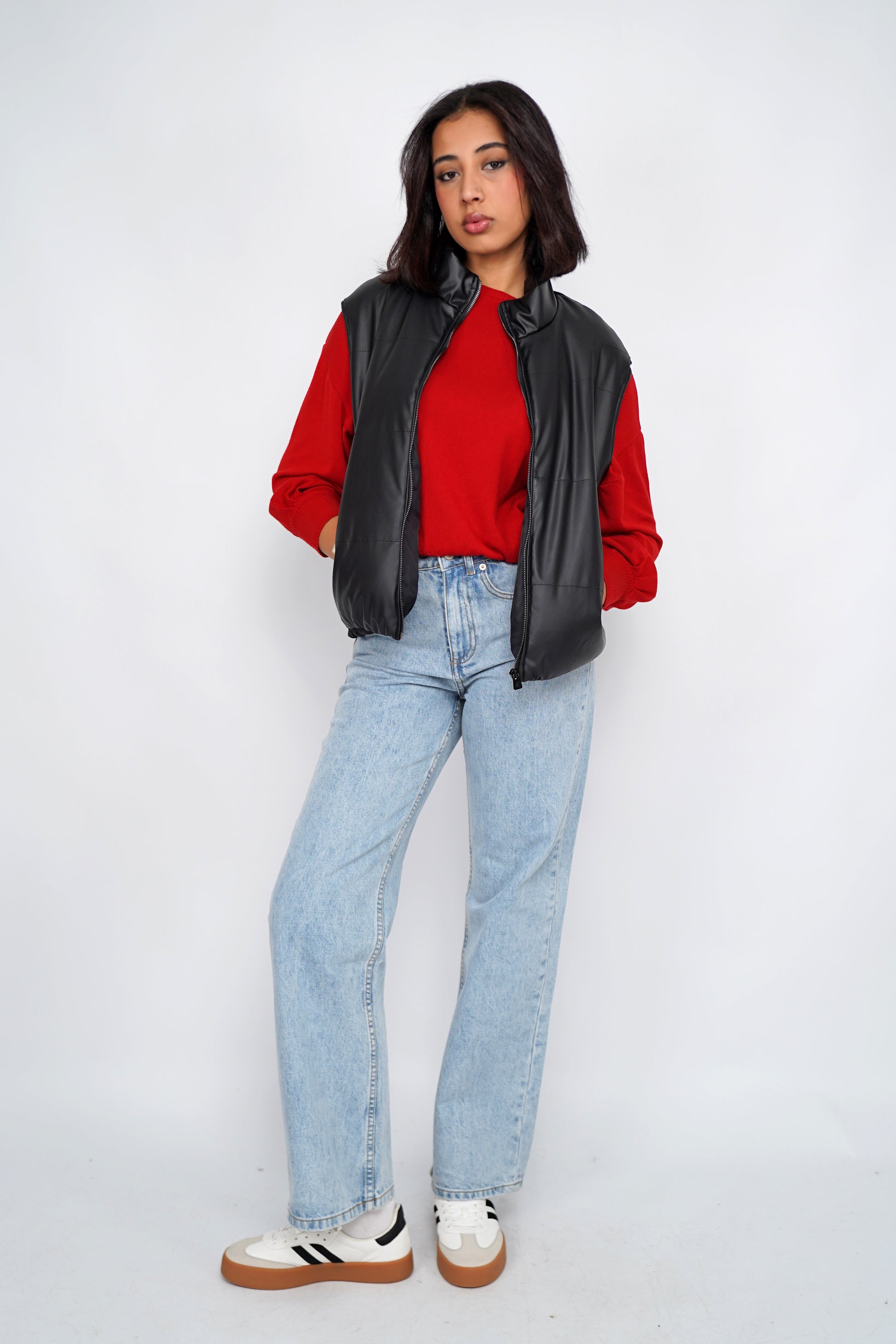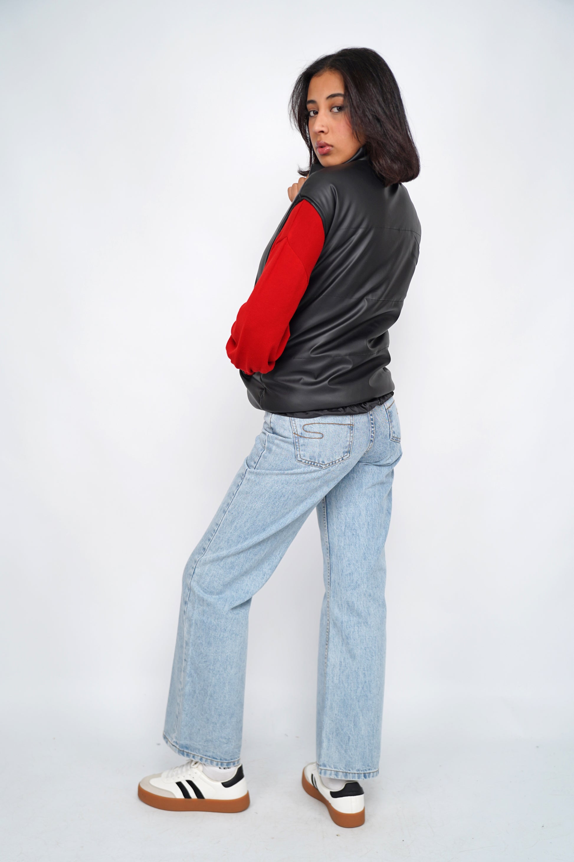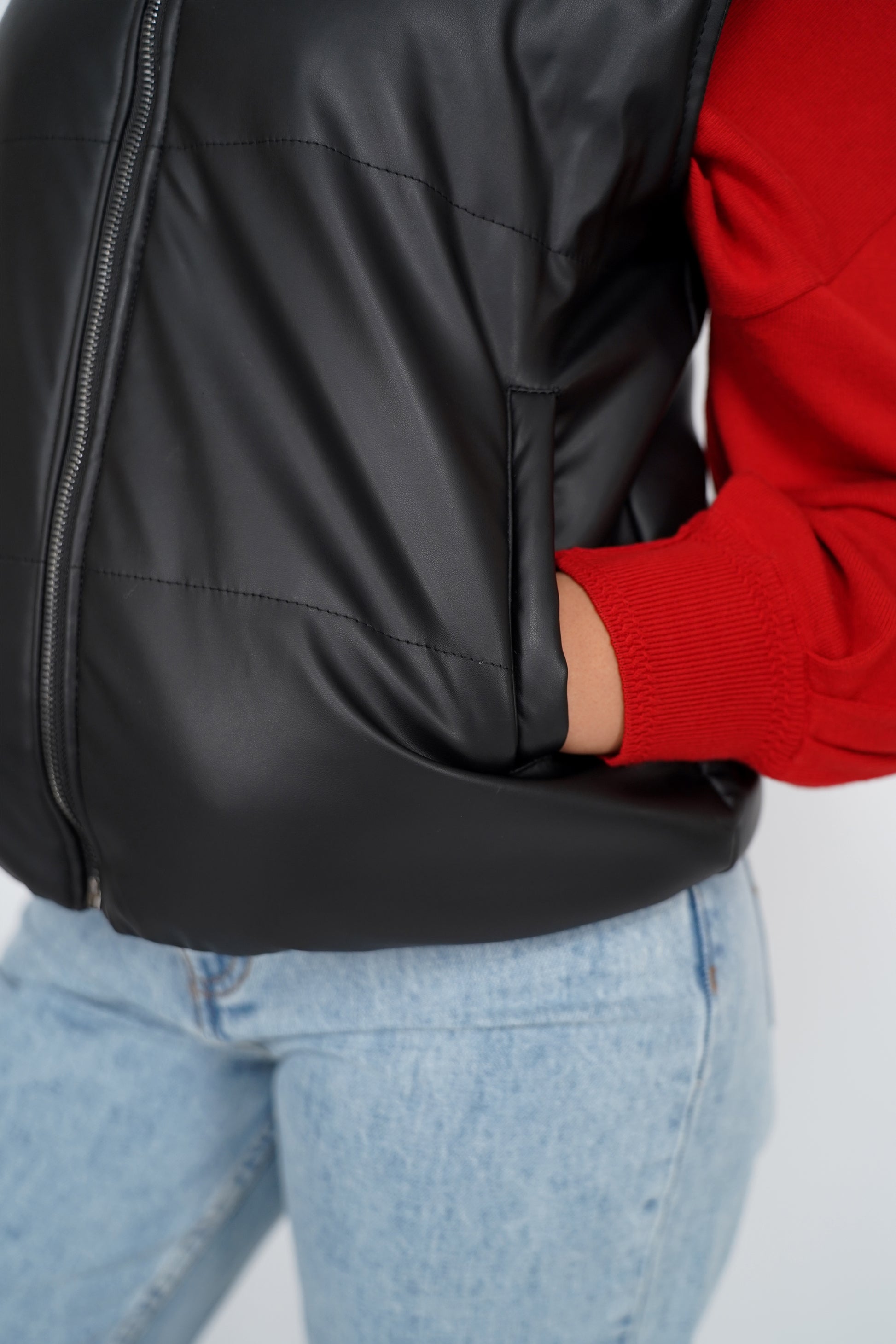 Doudoune sans manches effet cuir – Style urbain et audacieux