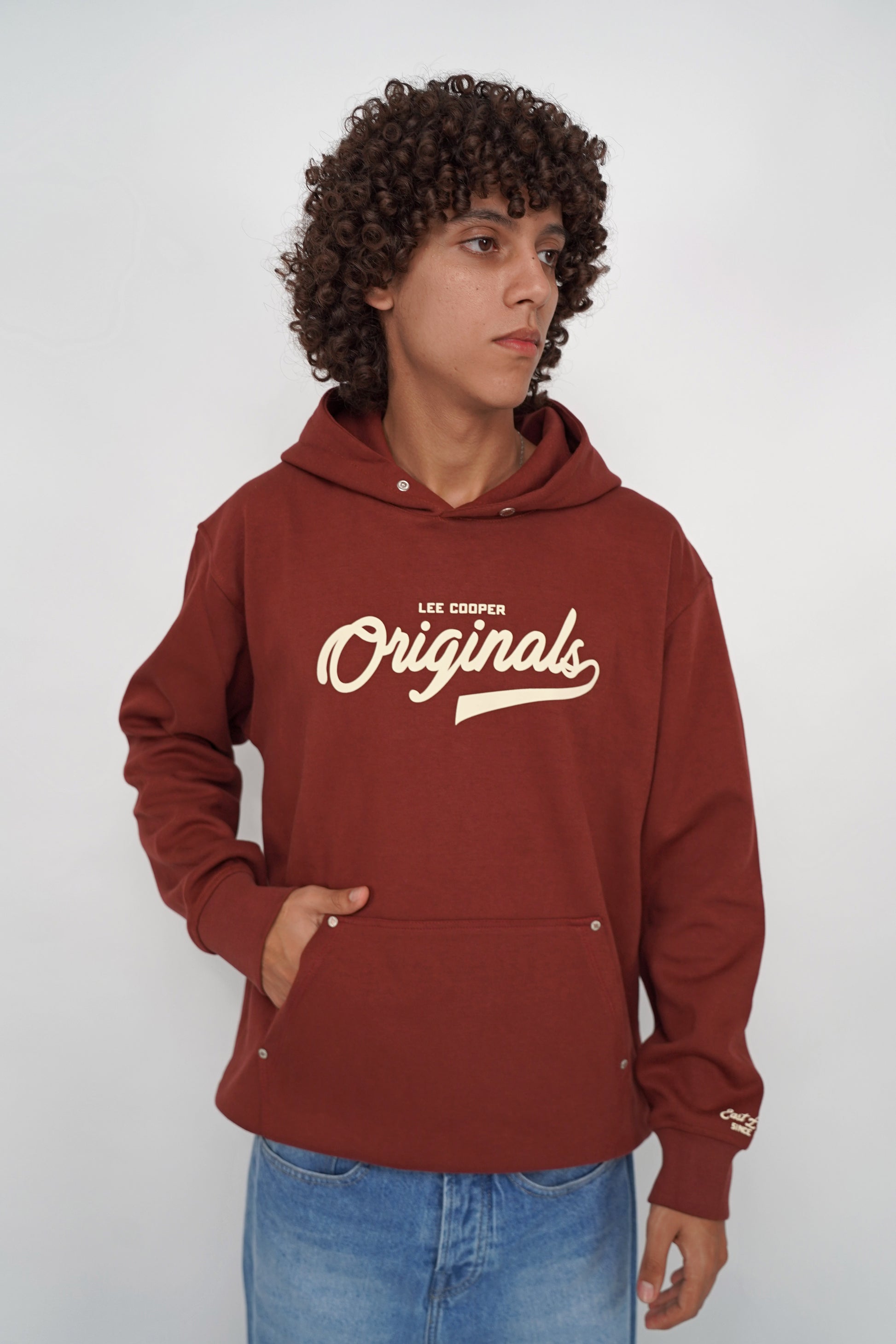 - Détails : inscription Lee Cooper Originals sur la poitrine, impression “East London Since 1908” sur la manche, poche kangourou à rivets métalliques