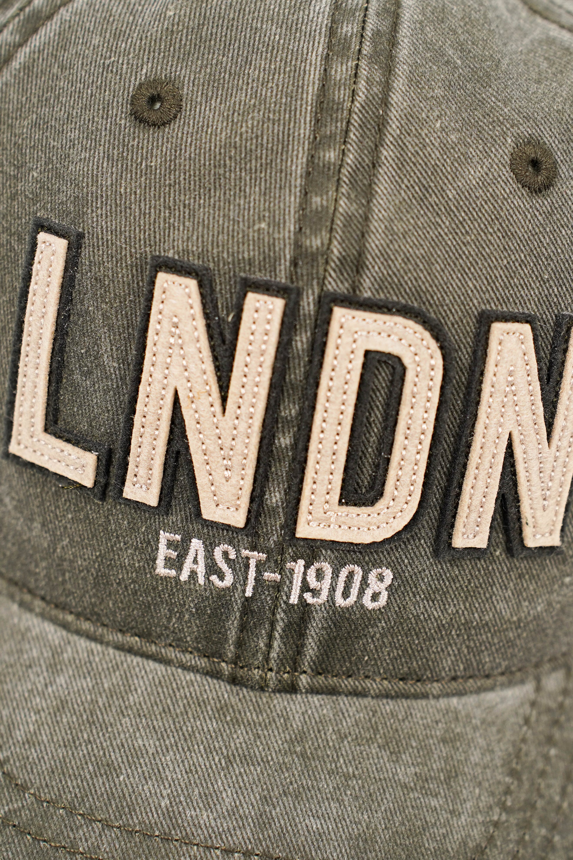 - Détails : broderie en relief “LNDN EAST·1908”