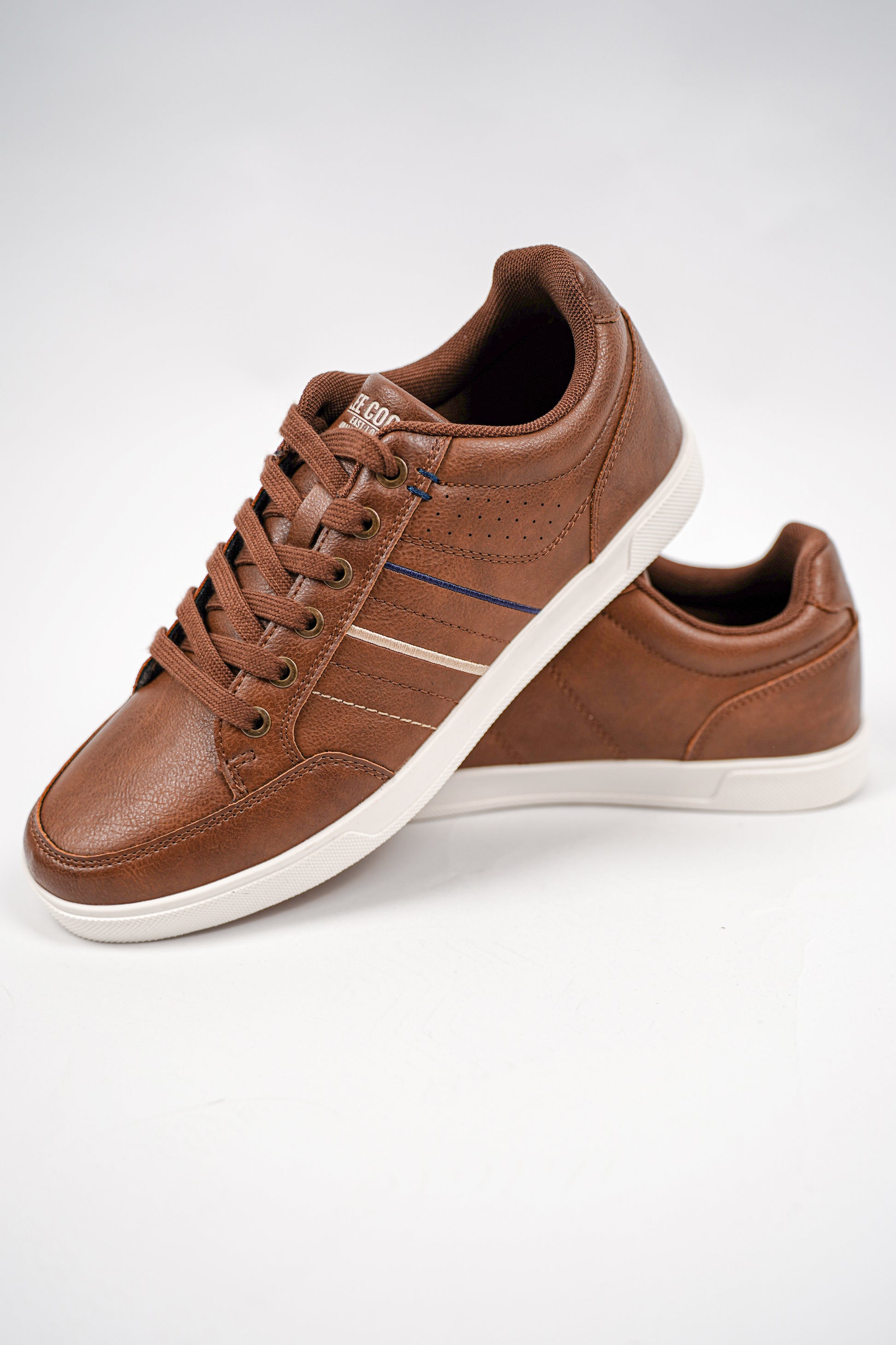 Optez pour un style moderne et polyvalent avec ces baskets marron pour homme Lee Cooper. Leur design travaillé — mêlant détails perforés, bandes contrastées et finition effet cuir — offre une allure élégante adaptée aussi bien aux looks décontractés qu’aux tenues urbaines.