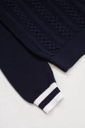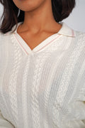Pull en maille torsadée avec col polo contrasté