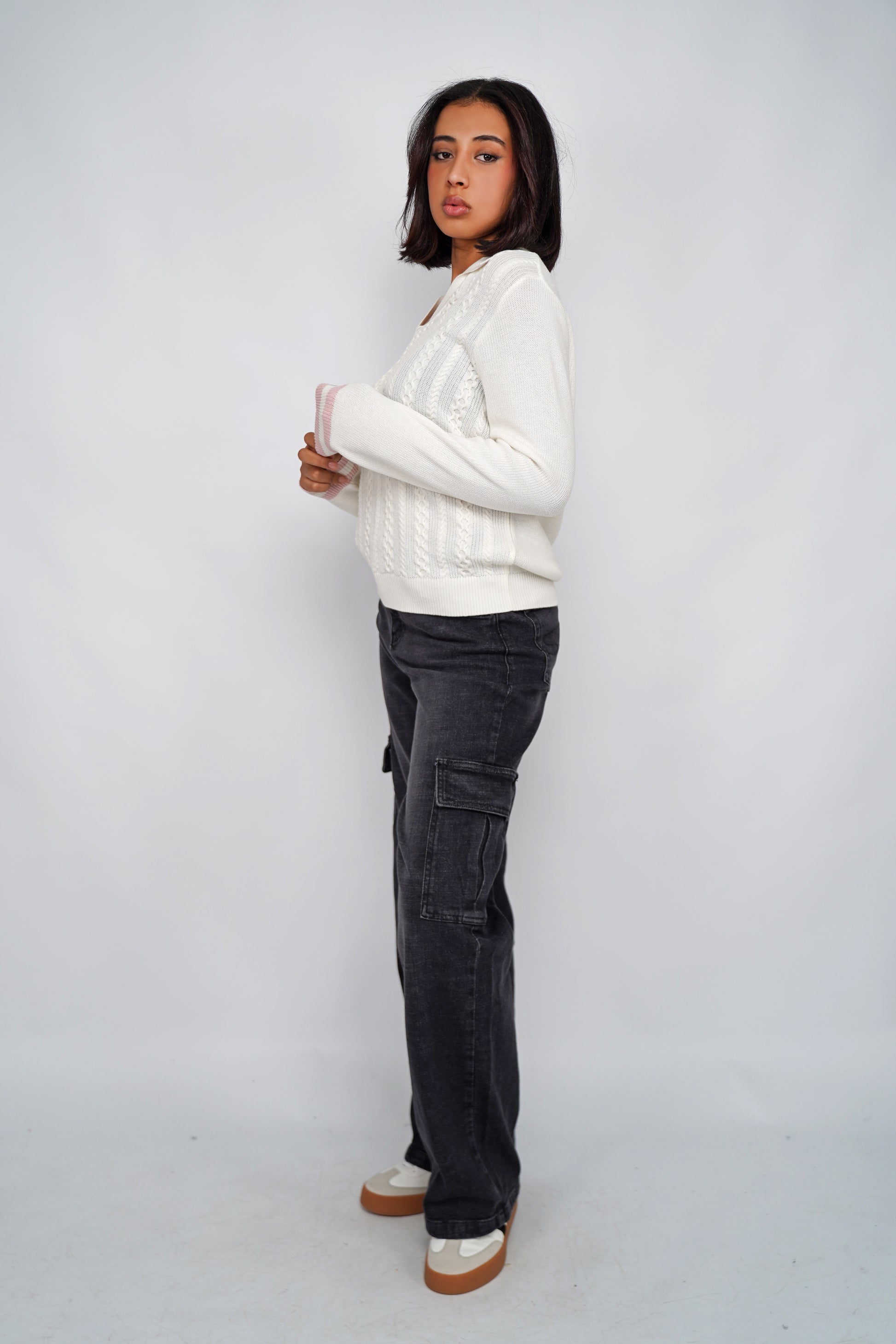 · Maille torsadée devant, finition texturée sur les manches et le dos