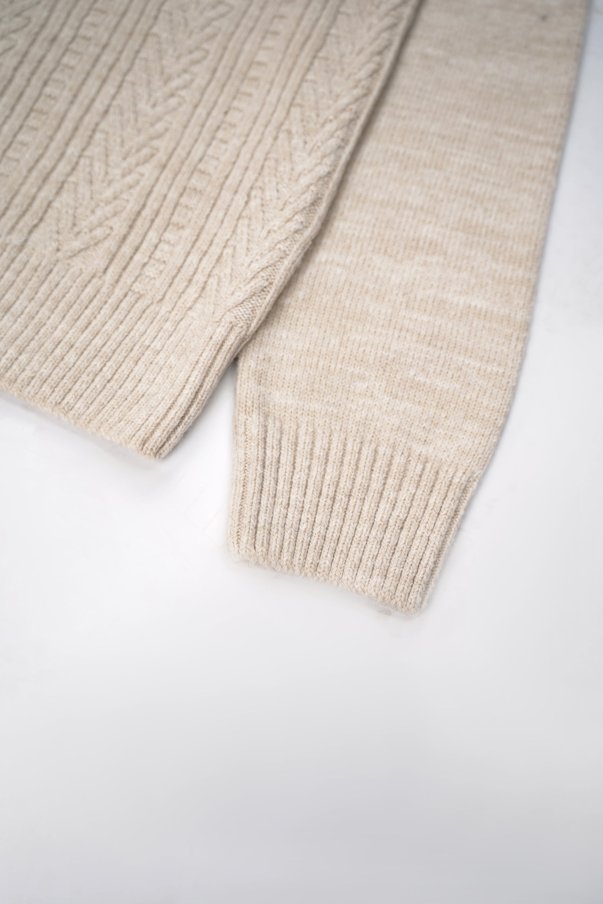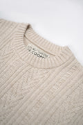 - Détails : motif torsadé, col rond, bords-côtes