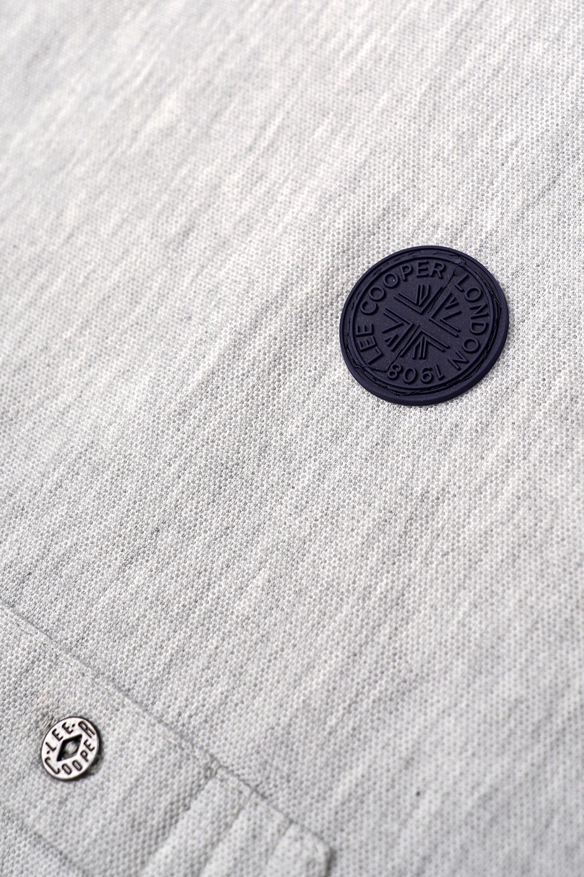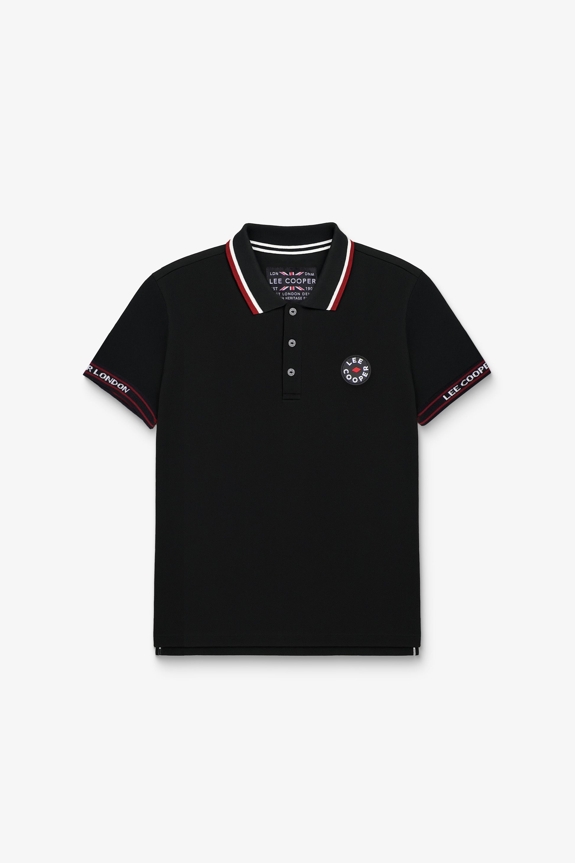 - Détails : col contrasté, badge sur la poitrine, manches avec inscription tissée “LEE COOPER / LONDON”