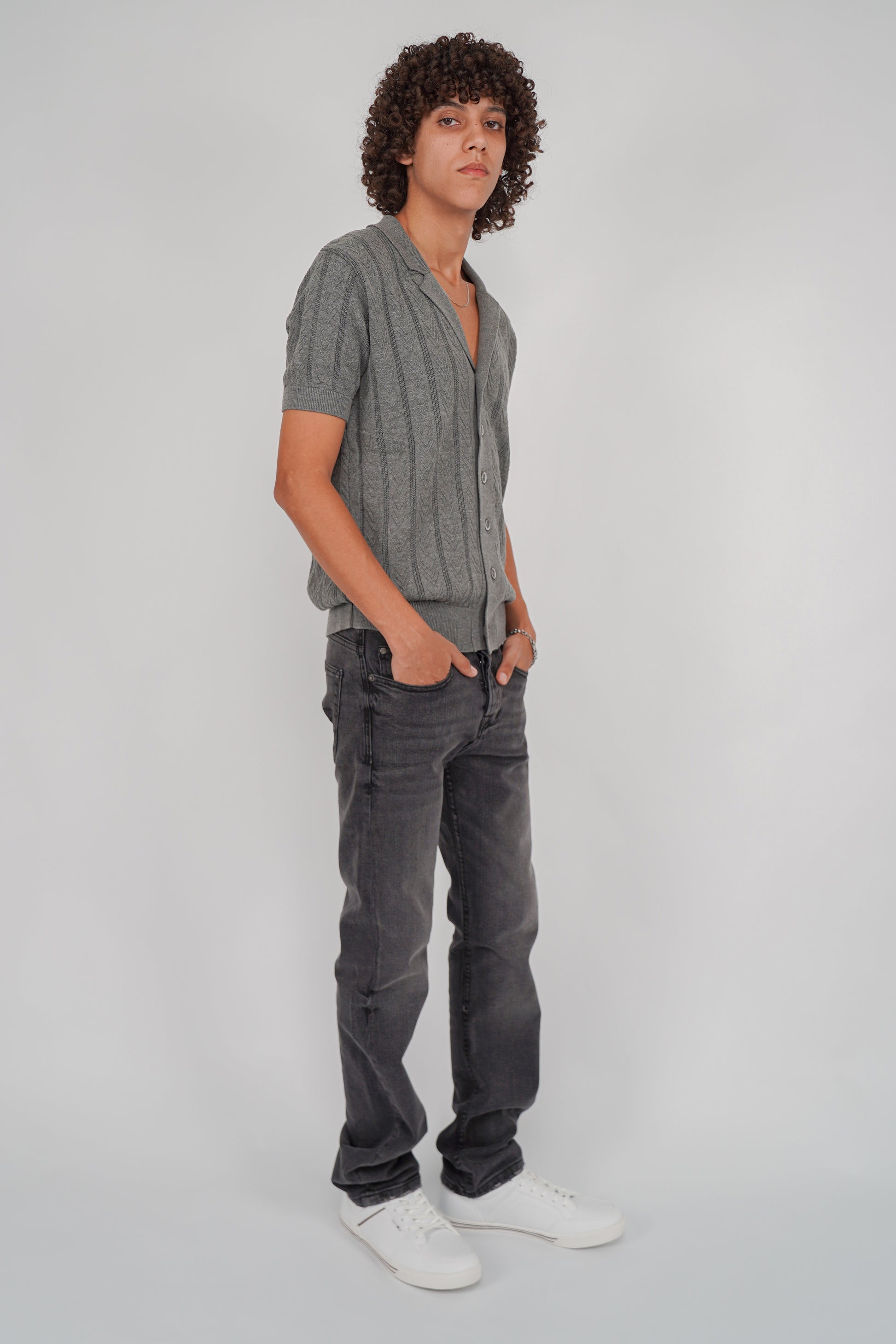 Jean Straight Fit Homme – Délavages Noir Stone & Gris Used