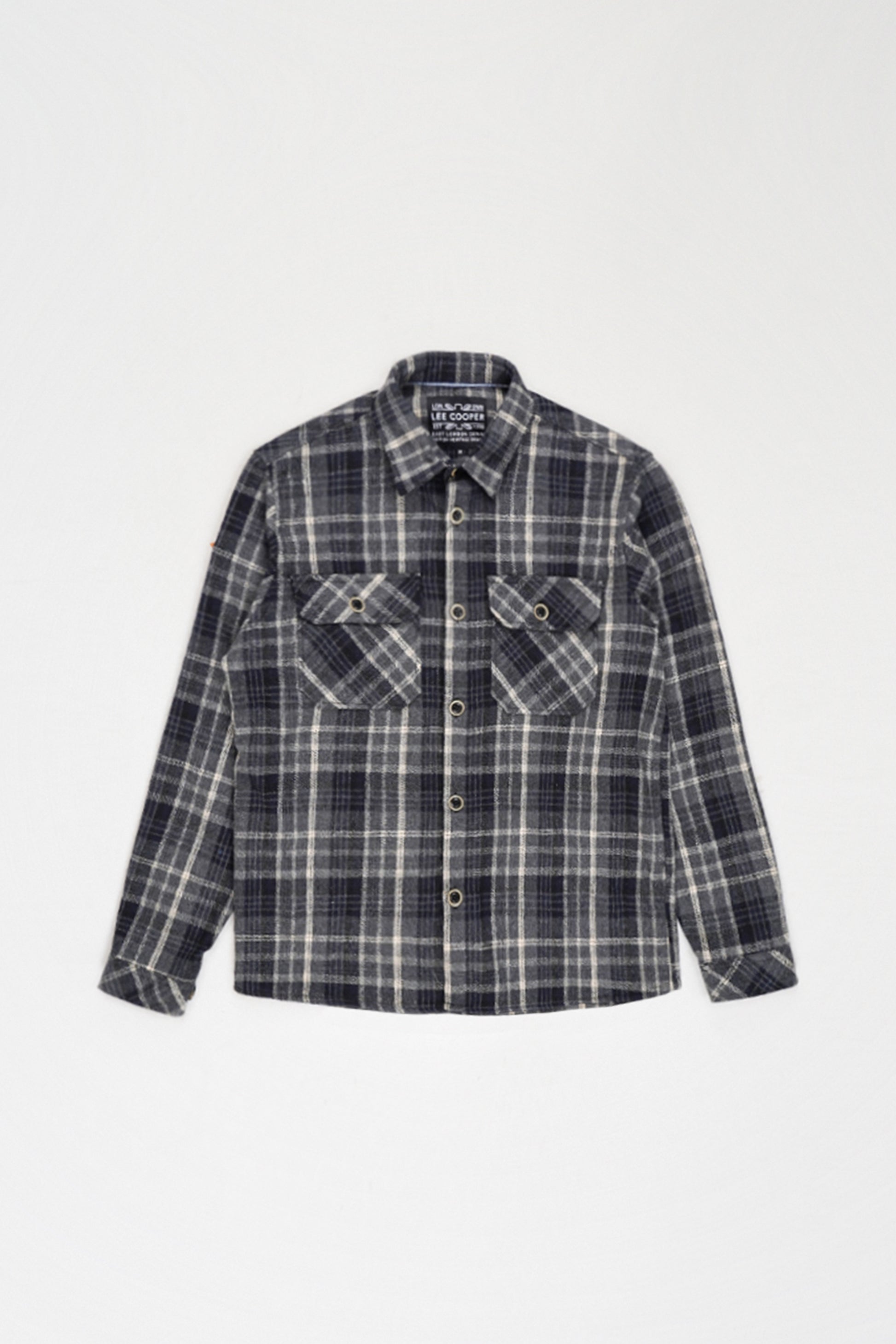 Alliant chaleur et authenticité, la surchemise Lee Cooper est l’indispensable des saisons fraîches. Confectionnée dans une flanelle épaisse et douce, elle se porte aussi bien fermée comme une chemise que ouverte sur un t-shirt pour un look workwear affirmé. Son motif à carreaux bleu marine et gris s’inspire du style vintage britannique, revisité pour un esprit moderne et urbain.